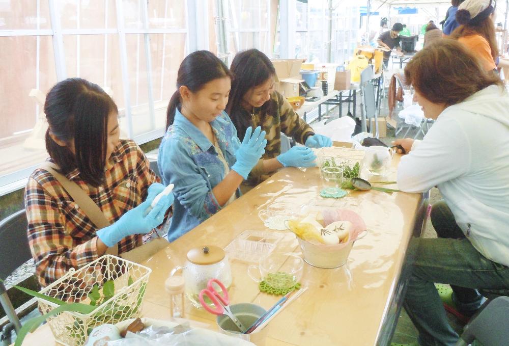 午後:④自家菜園のハーブ摘み&ハーブティー、ハーブ石鹸づくり⑤茶道体験