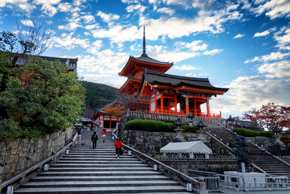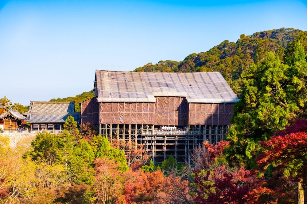 現在は本堂は国宝にも指定されており、テラスのように張り出した清水舞台と呼ばれる場所は高さ12mもあり、なんと建物全体が釘一本も使われずに作られた完全な木造建築物です。