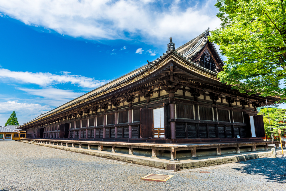 他にも巨大な本堂と龍の天井画や建物の東西南北にそれぞれ趣向の異なる枯山水庭園を配置した方丈、禅寺最古の三門など見所が随所にございます。