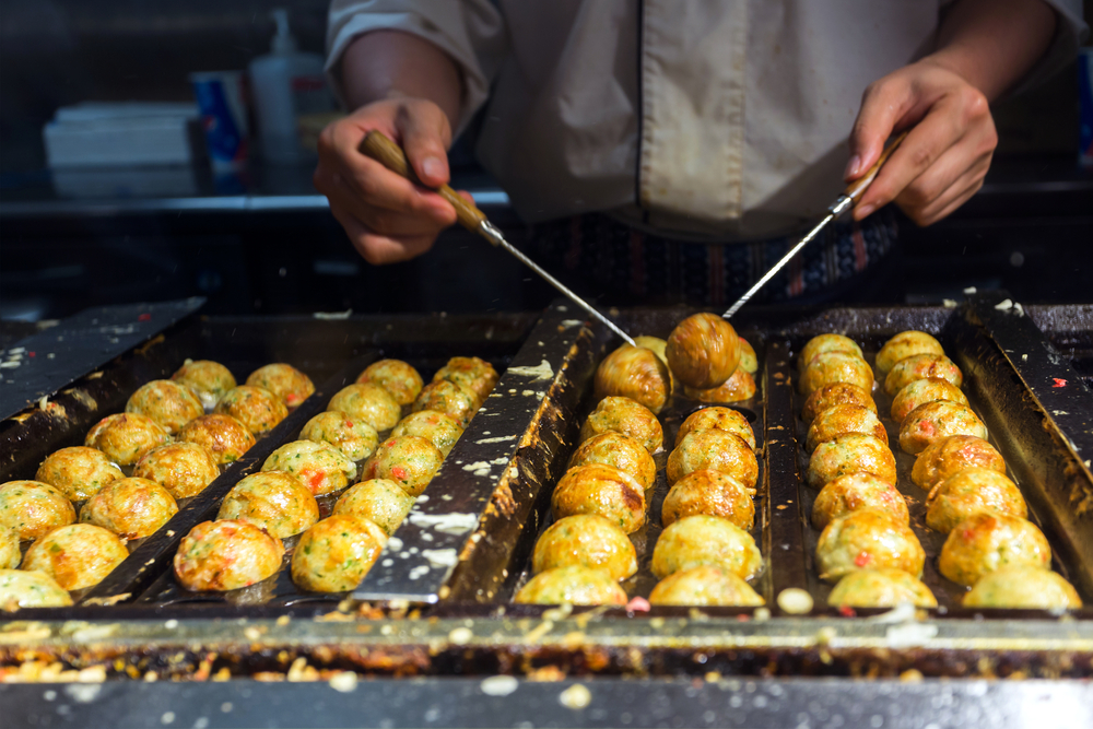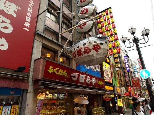 他にも、巨大な動くカニやタコ、フグなどの看板が楽しいこのエリアは、食いだおれの町大阪のシンボルでもあります。周辺には大阪ならではのローカルフード、お好み焼きやたこ焼き、串揚げの店が建ち並び、食べ歩きにはもってこい。